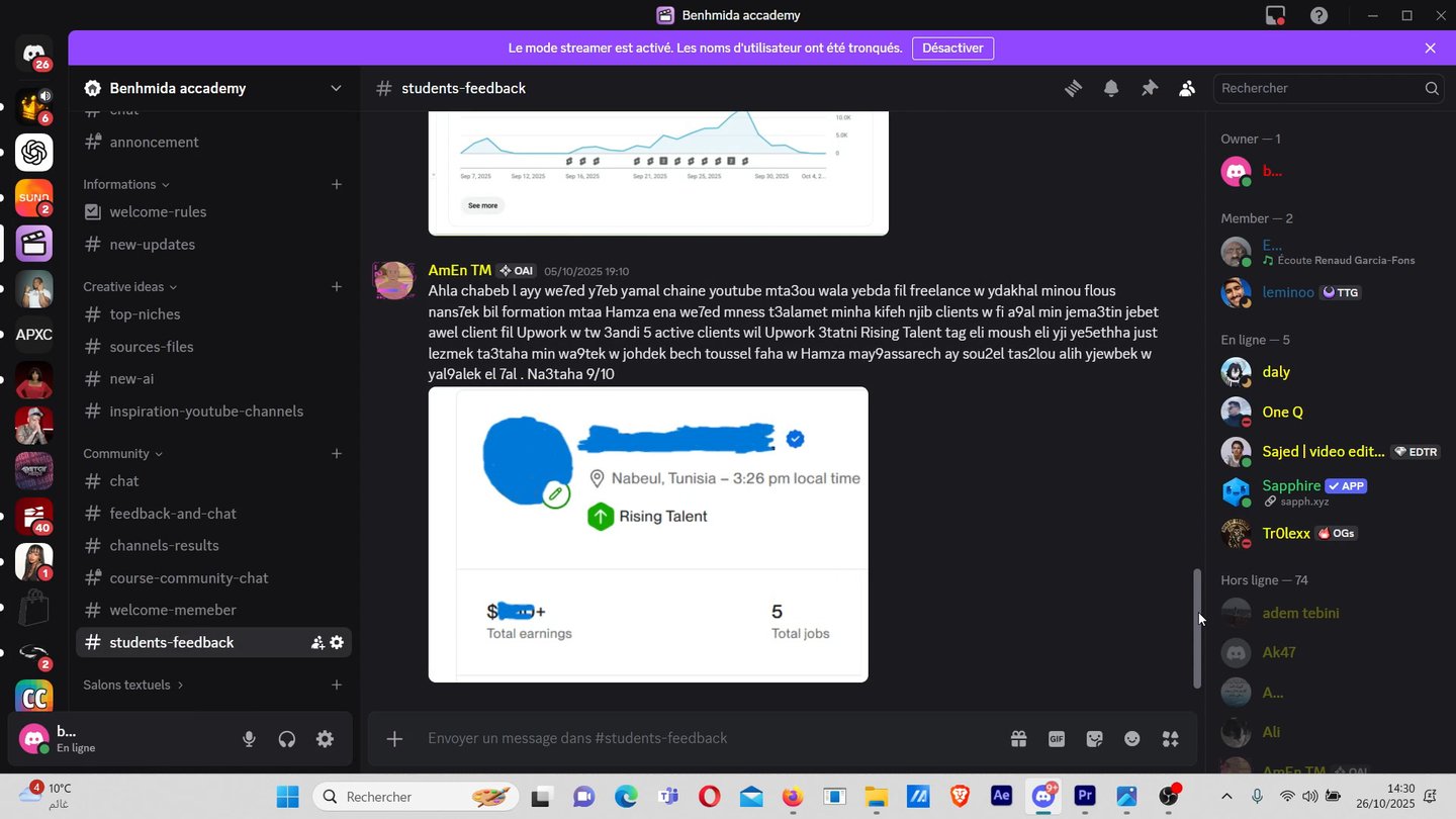 مش يكون عنا سيرفر discord وين تنجم تسأل و تلقى شكون يجاوبك و يعاونك باش تقدم